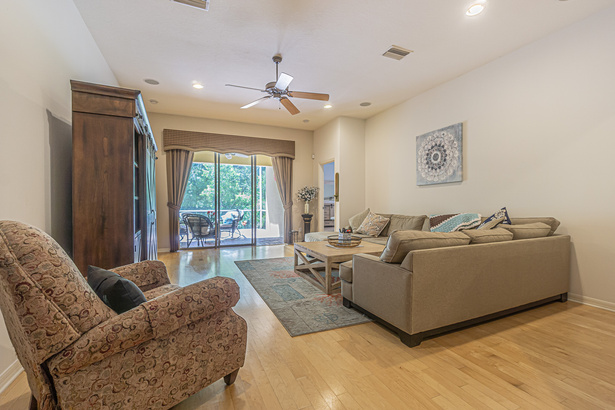 Sliders from the great room lead to the outdoor oasis, where a screened-in lanai awaits. Step outside to discover a haven of tranquility, complete with beautiful brick pavers and ample space for dining and lounging. Here, you can savor the fresh air and scenic views of the conservation area, all while remaining sheltered from the elements.